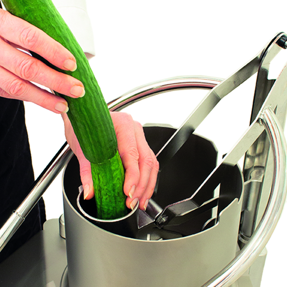 - 4-Rohr-Einfüllvorrichtung: Ideal zum Schneiden langer Produkte wie Gurken, Karotten oder Lauch